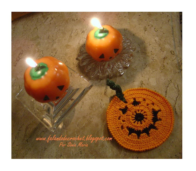Para comemorar o Halloween, fiz esse PORTA COPOS DE CROCHE "JACK O LANTERN". Eu me apaixonei por ele quando o vi no blog "anna y su mundo" , da querida ANNA COLO , http://anna-colo.blogspot.com/ . Ela o fez utilizando o PASSO-A-PASSO que muito gentilmente a MIVA do blog http://miva63crochet.blogspot.com/ fez. Passe por lá e veja que gracinha o trabalho dela.