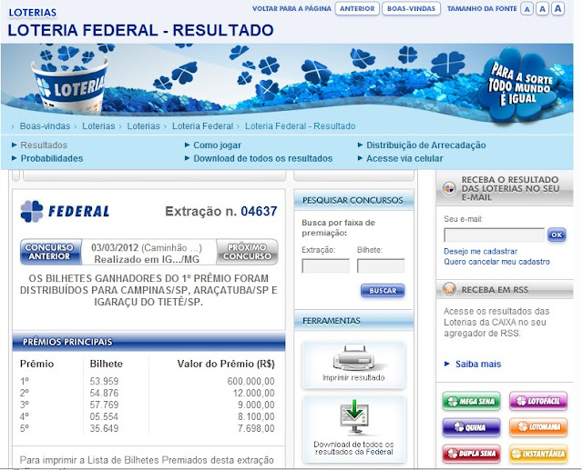 Resultado da extração de hoje da Loteria Federal, para conferir clique AQUI: